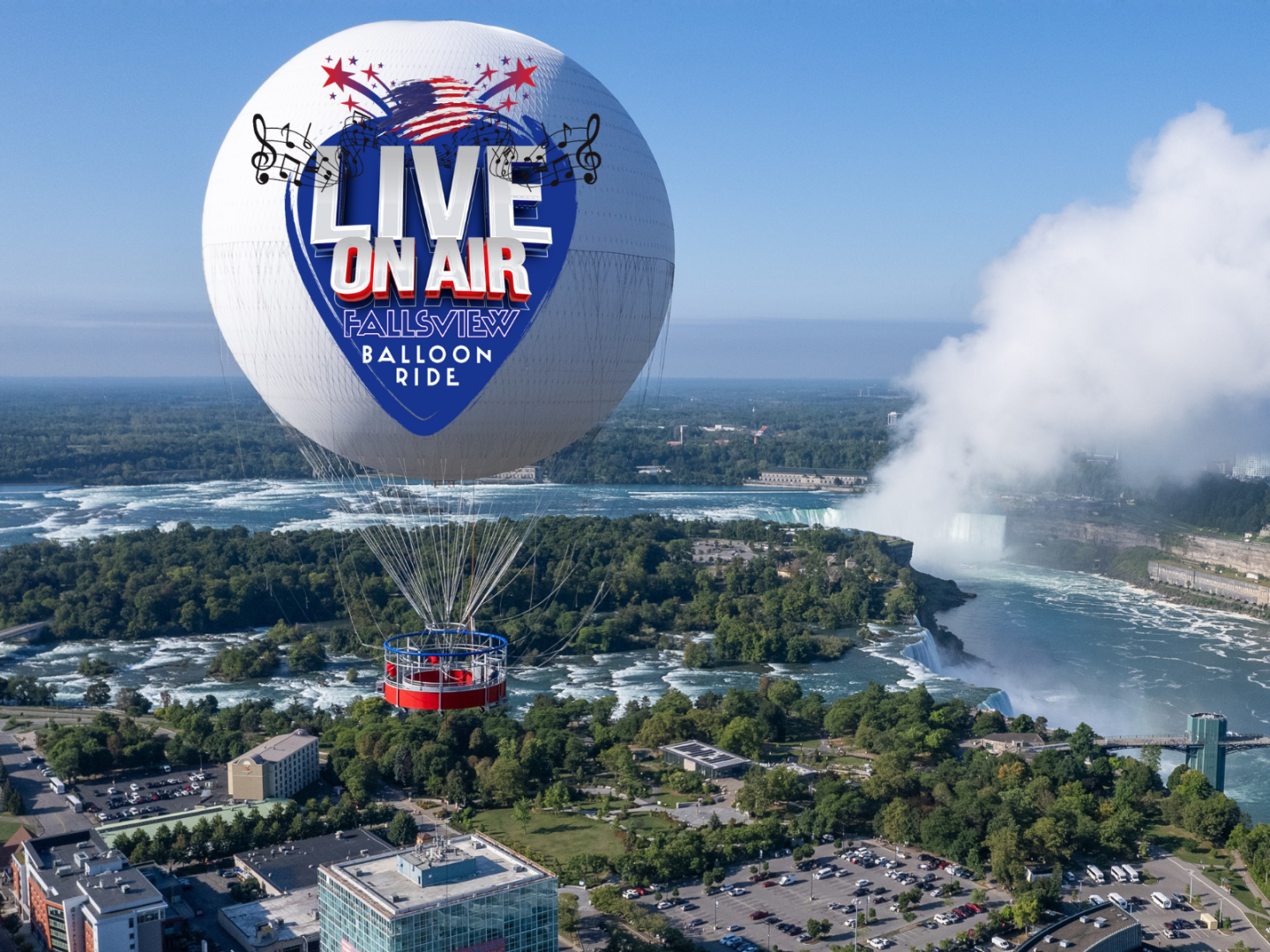 Get ready to experience Niagara Falls, USA’s newest attraction! Inflated by helium and powered by an electric winch, the custom-built balloon ascends to heights up to 500 feet, giving passengers a 15-minute flight filled with amazing aerial views of the Niagara Gorge, Niagara Falls USA tourist district, and the world famous Niagara Falls, all while rockin’ out to our very own Niagara Radio Station! The Balloon’s basket holds up to 30 people plus one Live! On Air Fallsview balloon certified pilot.